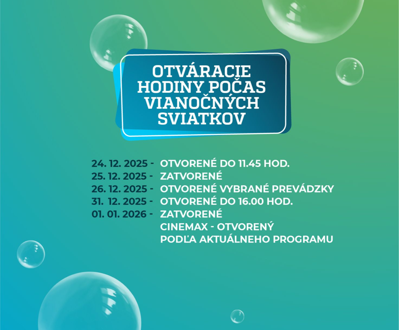 OTVÁRACIE HODINY POČAS VIANOC