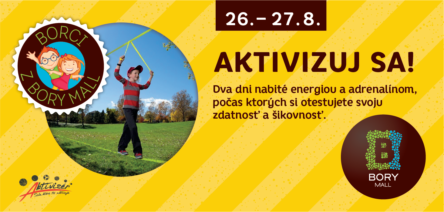 Ak obľubujete zábavné skupinové cvičenie, odporúčame vyskúšať Jumping fitnes, ktoré pozostáva z dynamického skákania, balancu a šprintov. Počuli ste už o cvičeniach Archery Tag, Slack line či Bouldering? Sú to nové aktivity, s ktorými prichádza aktivizer.sk. Ak Vás zaujíma chôdza na lane, lukostreľba či športové lezenie, na evente Borci z Bory Mall si môžete zmerať svoje sily a zapojiť sa do rôznych súťaží. Akčný víkend nabitý týmito i mnohými ďalšími originálnymi športmi očaria nielen mužov a ženy, ale aj deti a starých rodičov.