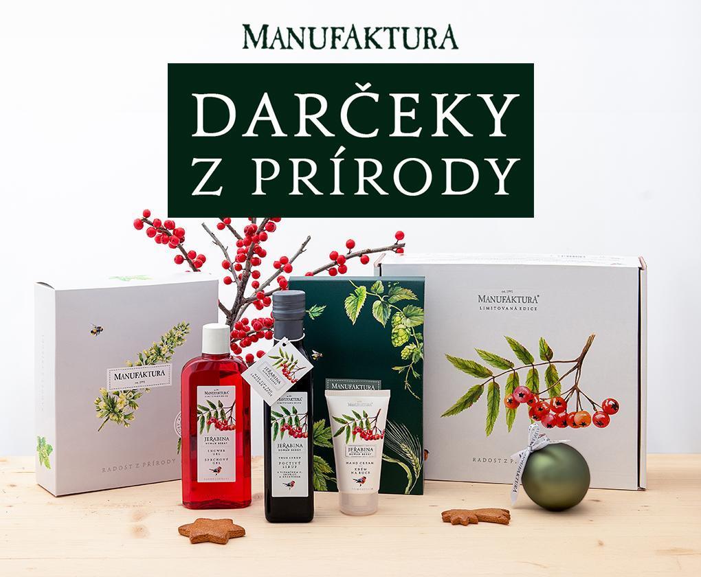 Objavte kúzlo darčekov z prírody pre celú rodinu! Kozmetické balíčky z Manufaktury sú obľúbenou vianočnou klasikou, ktorá zaručene poteší ženy aj mužov. Hitom tohtoročných Vianoc je limitovaná edícia Jarabina – očarujúca iskrivá vôňa s nádychom provokatívnej trpkosti, šetrné zloženie a nádherný dizajn. Viac sa dozviete na predajni.