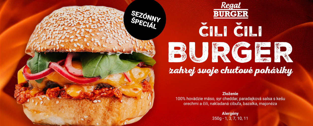 Zažite silu ohňa s limitovaným sezónnym špeciálom Čili Čili Burger v prevádzke Regal Burger!